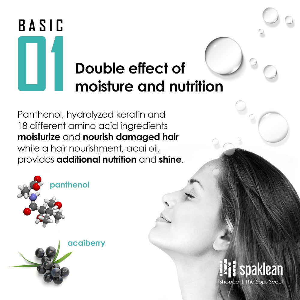 ☑ Panthenol, keratin terhidrolisis dan 18 jenis asid amino melembap dan menyuburkan rambut yang rosak